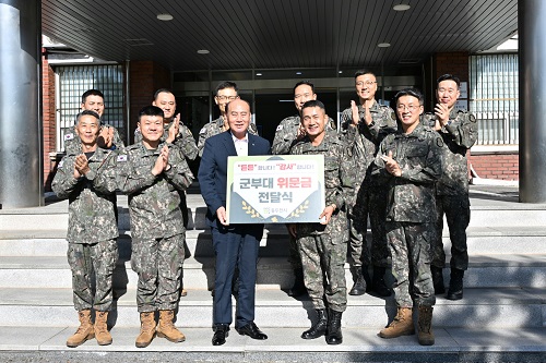 ÇÑÆí µ¿µÎõ½Ã´Â ±º°úÀÇ Çù·Â °È¸¦ À§ÇØ ±ººÎ´ë ÁÖº¯ Áö¿ø »ç¾÷À» Áö¼Ó ÃßÁøÇϰí ÀÖÀ¸¸ç, ¸Å³â ¸íÀý¸¶´Ù ºÎ´ë¸¦ ã¾Æ À§¹®±ÝÀ» Àü´ÞÇϸç À庴µéÀ» °Ý·ÁÇϰí ÀÖ´Ù.
