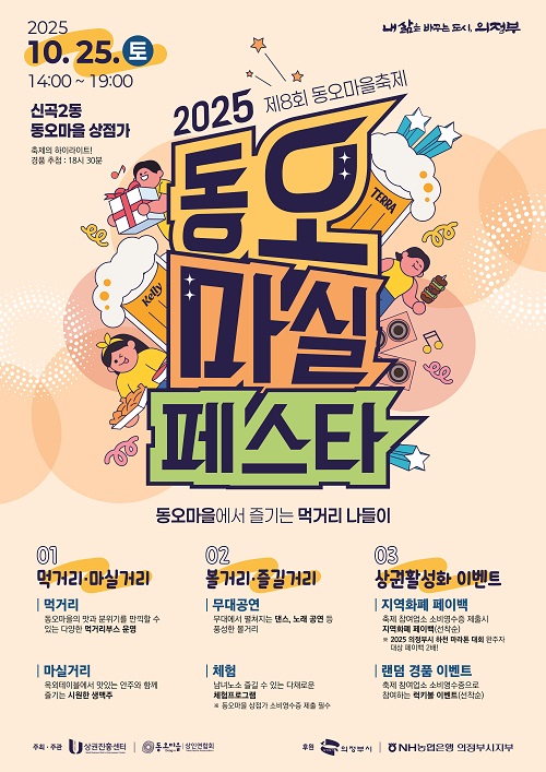 ÀÇÁ¤ºÎµµ½Ã°ø»ç´Â ‘Á¦8ȸ µ¿¿À¸¶À»ÃàÁ¦ 2025 µ¿¿À¸¶½ÇÆä½ºÅ¸’¸¦ ¿À´Â 10¿ù 25ÀÏ Åä¿äÀÏ ½Å°î2µ¿ µ¿¿À¸¶À» »ó±Ç¿¡¼ °³ÃÖÇÑ´Ù°í ¹àÇû´Ù.