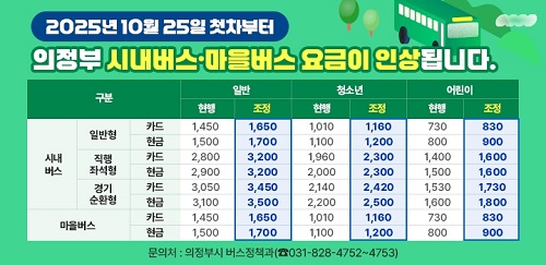 ÀÇÁ¤ºÎ½Ã(½ÃÀå ±èµ¿±Ù)´Â 10¿ù 25ÀÏ Ã¹Â÷ºÎÅÍ ½Ã³»¹ö½º ¹× ¸¶À»¹ö½º ¿ä±ÝÀÌ ÀλóµÈ´Ù°í ¹àÇû´Ù.