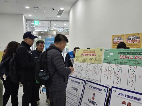 ÀÇÁ¤ºÎ½Ã ³ëµ¿¾ÈÀüÁöÅ´ÀÌ´Â Âü¿© ±¸ÀÎ ±â¾÷°ú ±¸Á÷ÀÚ¸¦ ´ë»óÀ¸·Î °æ±âµµ ³ëµ¿¾ÈÀüÁöÅ´ÀÌ È°µ¿ È«º¸ ¹× »ê¾÷ÇöÀå ¾ÈÀüÀǽÄÀ» °ÈÇϱâ À§ÇØ »êÀç ¿¹¹æ È«º¸Àü´Ü µîÀ» ¹èÆ÷ÇÏ°í ¡ã4´ë ¾Ç¼º »ç¸Á»ç°í ¡ã¾ÈÀü»ç°í ÀÇ½Ä ¡ã3´ë ¾ÈÀüÁ¶Ä¡ ¡ãÁß´ëÀçÇØ±â¾÷ó¹ú¹ý µî ÁÖ¿ä ÁÖÁ¦ÀÇ Á¡°ËÇ¥¿¡ ½ºÆ¼Ä¿¸¦ ºÎÂøÇÏ¸ç ½Ã¹ÎµéÀÇ ¾ÈÀüº¸°Ç ÀÇ½Ä ¼öÁØÀ» ºÐ¼®Çß´Ù.