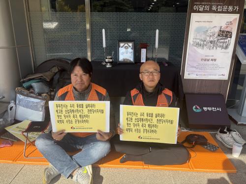 ÀÌ¿Í °ü·Ã, °ø°ø¿¬´ë³ëµ¿Á¶ÇÕ µ¿µÎõÁöȸ´Â 10¿ù27ÀÏ ¿ÀÈÄ 2½Ã30ºÐ°æ µ¿µÎõ½Ãû Áß¾ÓÇö°ü ³»ºÎ¿¡ ºÐÇâ¼Ò¸¦ ¼³Ä¡Çß´Ù°¡ µ¿µÎõ½Ã ¿äûÀ¸·Î ¿ÜºÎ·Î À̵¿Çß´Ù.
