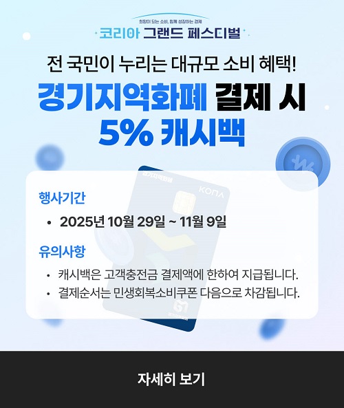 ij½Ã¹éÀº ¹Î»ýȸº¹ ¼ÒºñÄíÆù »ç¿ëó ¹× µ¿µÎõ»ç¶ûÄ«µå °¡¸ÍÁ¡¿¡¼ Á¤Ã¥¼ö´ç°ú Àμ¾Æ¼ºê °áÁ¦±Ý¾×À» Á¦¿ÜÇÑ, ÀÏ¹Ý ÃæÀü±Ý °áÁ¦±Ý¾×¿¡ ÇÑÇØ Áö±ÞµÈ´Ù. ¶ÇÇÑ 1Àδç ÃÖ´ë 40¸¸ ¿ø Çѵµ ³»¿¡¼ °áÁ¦ ½Ã 5%¸¦ ȯ±ÞÇØ ÃÖ´ë 2¸¸ ¿ø±îÁö Áö±ÞµÇ¸ç Çà»ç ±â°£ÀÌ ³²´õ¶óµµ ¿¹»êÀÌ ¼ÒÁøµÇ¸é ÀÚµ¿ Á¾·áµÈ´Ù.