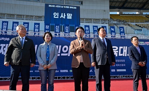 3õ¿© ¸íÀÇ ½Ã¹Î°ú 15°³ µ¿ ¼±¼öµéÀÌ Âü¿©ÇØ ¶ß°Å¿î ¿±â¸¦ ´õÇÑ À̹ø ´ëȸ´Â, ÀÇÁ¤ºÎ½ÃüÀ°È¸¿Í 15°³ µ¿ üÀ°ÁøÈïȸ ÁÖ°üÀ¸·Î ¿·ÈÀ¸¸ç, ½ÃÀåÀ» ºñ·ÔÇÑ ±¹È¸ÀÇ¿ø, ½ÃÀÇȸ ÀÇÀå, µµ‧½ÃÀÇ¿ø µî °¢°è Àλçµéµµ ÇÔ²²ÇØ ½Ã¹ÎµéÀ» ÀÀ¿øÇß´Ù.