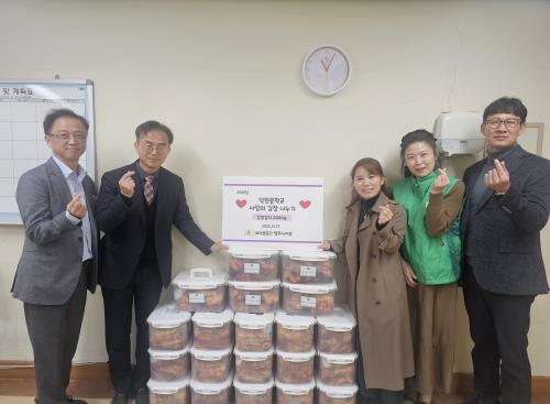 »õ¸¶À»¹®°í ¾çÁÖ½ÃÁöºÎ(ȸÀå ¿À°æ¿Á)´Â 11¿ù17ÀÏ ´öÇöÁßÇб³¸¦ ¹æ¹®ÇØ Áö¿ª ³» ºÒ¿ìÀÌ¿ô°ú °á½Ä ¿ì·Á ÇлýµéÀ» À§ÇÑ ±èÄ¡ 200§¸À» Àü´ÞÇß´Ù.