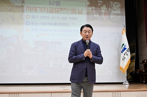 ÀÇÁ¤ºÎ½Ã(½ÃÀå ±èµ¿±Ù)´Â 12¿ù 5ÀÏ ½Ãû ÅÂÁ¶È¦¿¡¼ ½Ã¹Î°ú Á÷¿ø 150¿© ¸íÀÌ Âü¼®ÇÑ °¡¿îµ¥ ‘2025³â 12¿ù ¹Ì·¡°¡Ä¡ °øÀ¯Ç÷¯½º+ÀÇ ³¯’À» ¿°í ‘µðÀÚÀÎ µµ½Ã’¿¡ ´ëÇÑ ºñÀüÀ» °øÀ¯Çß´Ù.