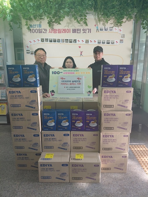 ÀÇÁ¤ºÎ½Ã ¼Û»ê1µ¿Áֹμ¾ÅÍ(µ¿Àå Àü¼±³à)´Â 12¿ù 8ÀÏ ¿ëÇöµ¿ ¼ÒÀç À̵ð¾ßÄ¿ÇÇ ¼Ö¸þDTÁ¡(Á¡Àå Çö¼®Áø)ÀÌ °ü³» Ãë¾à°èÃþ Áö¿øÀ» À§ÇØ Ä¿Çǹͽº 80»óÀÚ¸¦ ±âŹÇß´Ù°í ¹àÇû´Ù.