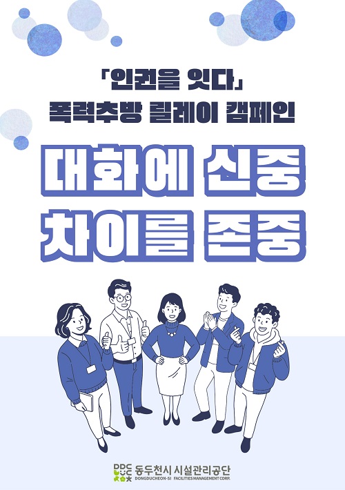 µ¿µÎõ½Ã½Ã¼³°ü¸®°ø´Ü(ÀÌ»çÀå ÀÌÁ¾Áø)Àº Áö³­ 11ÀÏ ‘ÀαÇÀ» ÀÕ´Ù’ Æø·ÂÃß¹æ ¸±·¹ÀÌ Ä·ÆäÀο¡ Âü¿©ÇØ Á÷Àå ³» ±«·ÓÈû·¼ºÈñ·Õ ¿¹¹æ°ú ÀαÇÁ¸Áß ¹®È­ È®»êÀ» À§ÇÑ ´Ù¾çÇÑ È°µ¿À» ÃßÁøÇß´Ù°í ¹àÇû´Ù.