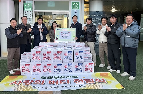 ÀÇÁ¤ºÎ½Ã ¼Û»ê1µ¿Áֹμ¾ÅÍ(µ¿Àå Àü¼±³à)´Â 12¿ù 9ÀÏ ¼Û»ê°ñÇÁȸ »ç¶ûÀÇ ¹öµð(ȸÀå ¹Úµ·½Å)°¡ ‘100Àϰ£ »ç¶û¸±·¹ÀÌ ¹èÅÏ ÀձⒿ¡ µ¿ÂüÇØ Áö¿ª ³» Ãë¾à°èÃþ Áö¿øÀ» À§ÇÑ ¶ó¸é 80»óÀÚ¸¦ ±âŹÇß´Ù°í ¹àÇû´Ù.