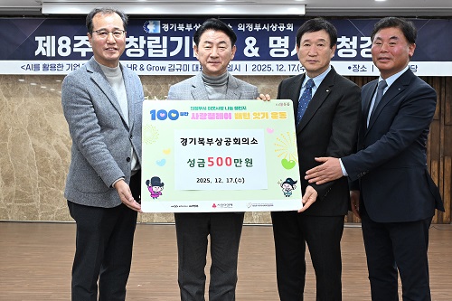 ÀÇÁ¤ºÎ½Ã(½ÃÀå ±èµ¿±Ù)´Â 12¿ù 17ÀÏ °æ±âºÏºÎ»ó°øÈ¸ÀÇ¼Ò ´ë°´ç¿¡¼ ÀÇÁ¤ºÎ½Ã»ó°øÈ¸(ȸÀå °ø´ëȯ)°¡ ȸ¿ø ¹× °ü°èÀÚ 100¿© ¸íÀÌ Âü¼®ÇÑ °¡¿îµ¥ ‘⸳ Á¦8Áֳ⠱â³ä½Ä’À» °³ÃÖÇß´Ù°í ¹àÇû´Ù.