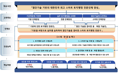 ÅäÁöÇàÁ¤Çаú´Â Çаú´Â ±³À° ¸ñÇ¥¸¦ ¡â±âÃÊÇй®¿¡ ±â¹ÝÇÑ ±âº» ÀÎÀç¾ç¼º ¡â½Ç¹« ÅäÁöÇàÁ¤À» °í·ÁÇÑ Àü¹® ÀÎÀç¾ç¼º ¡â÷´Ü±â¼ú¿¡ µµÀüÇÏ´Â ½º¸¶Æ® ÀÎÀç¾ç¼ºÀÇ ¼¼ ÃàÀ¸·Î ¼³Á¤Çß´Ù. À̸¦ ÅëÇØ ‘±âº»¿¡ °ÇÑ ÅäÁöÇàÁ¤ Àü¹®ÀÎ’, ‘±âº»À» ¹ÙÅÁÀ¸·Î ½Ç¹«¸¦ ½ÀµæÇÑ Àü¹®°¡’, ‘÷´Ü±â¼úÀ» °âºñÇÑ À¶¤ýº¹ÇÕÇü ½º¸¶Æ® ÅäÁöÇàÁ¤ Àü¹®°¡’¶ó´Â ÀÎÀç»óÀ» ´Ü°èÀûÀ¸·Î À°¼ºÇÒ °èȹÀÌ´Ù.