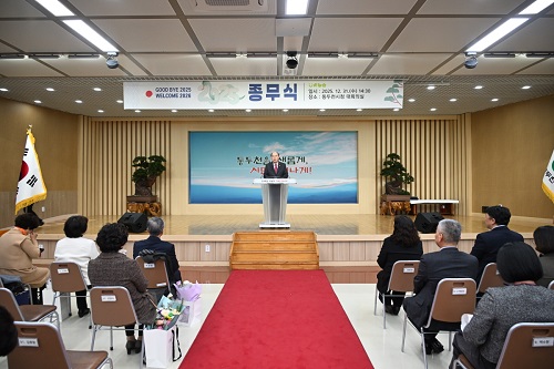 µ¿µÎõ½Ã´Â Áö³ 12¿ù 31ÀÏ ½Ãû ´ëȸÀǽǿ¡¼ ‘2025³â Á¾¹«½Ä’À» °³ÃÖÇß´Ù. À̳¯ Çà»ç¿¡´Â ǥâ ¼ö»óÀÚ¿Í °ø¹«¿ø µî 200¿© ¸íÀÌ Âü¼®Çß´Ù.