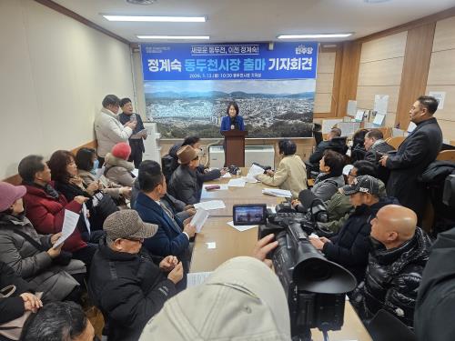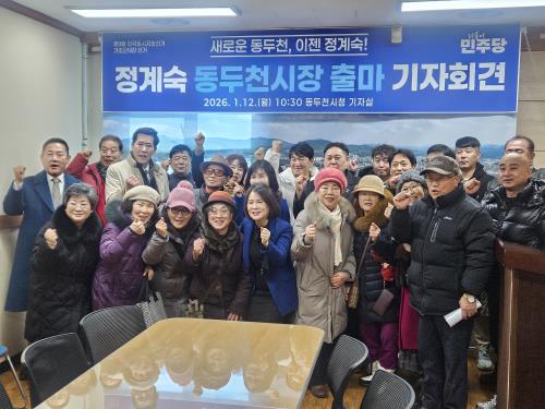 ´õºÒ¾î¹ÎÁÖ´ç ¼Ò¼Ó Á¤°è¼÷ Àü µ¿µÎõ½ÃÀÇ¿øÀÌ “µ¿µÎõÀÇ ¸ØÃá ½ÉÀåÀ» ´Ù½Ã ¶Ù°Ô Çϰڴٔ¸ç µ¿µÎõ½ÃÀå Ã⸶¸¦ °ø½Ä ¼±¾ðÇß´Ù.