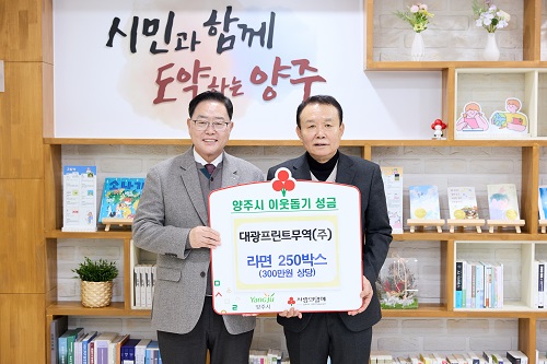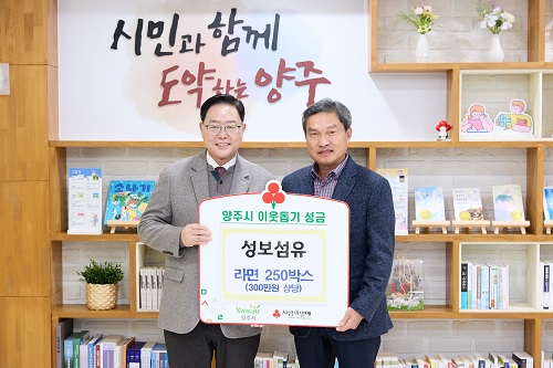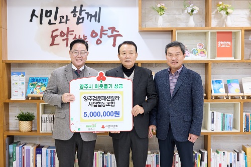 À̹ø ±âŹ¿¡´Â ¾çÁÖ°ËÁØÆÐ¼ÇÄ®¶ó»ç¾÷Çùµ¿Á¶ÇÕ(Á¶ÇÕÀå À¯ÀÎÀç)°ú ¾çÁÖÆÐ¼ÇÄ®¶ó»ê¾÷´ÜÁöÀÔÁÖ±â¾÷üÇùÀÇȸ(ÀÌ»ç À¯ÀÎÀç)°¡ °¢°¢ ¼º±Ý 500¸¸ ¿ø¾¿ ÃÑ 1,000¸¸ ¿øÀ» ±âºÎÇßÀ¸¸ç, ´ë±¤ÇÁ¸°Æ®¹«¿ª¢ß(´ëÇ¥ À¯ÀÎÀç)¿Í ¼ºº¸¼¶À¯(´ëÇ¥ ±èÇü½Ä)´Â ¶ó¸é °¢ 250¹Ú½º¾¿ ÃÑ 500¹Ú½º(600¸¸ ¿ø »ó´ç)¸¦ Àü´ÞÇÏ¸ç ³ª´®¿¡ µ¿ÂüÇß´Ù.