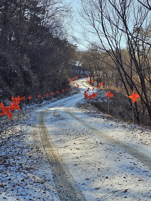 Á¦2µî»ê·Î¿¡´Â ÁÖȲ»ö ¹Ù¶÷°³ºñ 300°³, Á¦3µî»ê·Î¿¡´Â űر⠹ٶ÷°³ºñ 100°³°¡ ¾à 3m °£°ÝÀ¸·Î ¼³Ä¡µÆÀ¸¸ç, ±âÁ¸ Á¦1µî»ê·ÎÀÇ ³ë¶õ»ö ¹Ù¶÷°³ºñ´Â ÈÑ¼Õ ±¸°£À» º¸¼öÇϰí Ãß°¡ ¼³Ä¡ÇÏ¿© ¾È³» ±â´ÉÀ» °ÈÇß´Ù.