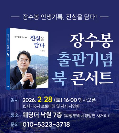Àå¼öºÀ Á¶±¹Çõ½Å´ç ÀÇÁ¤ºÎ½Ã Áö¿ªÀ§¿øÀåÀÌ ¿À´Â 2¿ù28ÀÏ ¿ÀÈÄ 4½Ã ÀÇÁ¤ºÎ ¿þµù´õ³«¿ø 7Ãþ¿¡¼ ÀÚ½ÅÀÇ Àλý ¿©Á¤°ú ÀÇÁ¤ºÎ¿¡ ´ëÇÑ ±íÀº ¾ÖÁ¤À» ´ãÀº Àú¼ <Áø½ÉÀ» ´ã´Ù> ÃâÆÇ±â³ä ºÏ ÄܼƮ¸¦ °³ÃÖÇÑ´Ù.