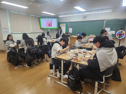 ÇлýµéÀº ÀÚ±â¼Ò°³ºÎÅÍ ÀϺ» ¹®È ÇнÀ, Çùµ¿ ÇÁ·ÎÁ§Æ®, ¿ä¸®È°µ¿, Ä«µå´º½º Á¦ÀÛ µî ¿µ¾î¸¦ ÀÚ¿¬½º·´°Ô µè°í ¸»Çϴ Ȱµ¿ Áß½ÉÀÇ ¼ö¾÷À» üÇèÇß´Ù. ƯÈ÷, ½Ç½Ã°£ ±¹Á¦±³·ù ¼ö¾÷À» ´ëºñÇÑ ¹ßÇ¥ ¿¬½À°ú ÄÜÅÙÃ÷ Á¦ÀÛÀº ÇлýµéÀÇ Ã¢ÀǼº°ú Çù¾÷ ´É·ÂÀ» Ű¿ì´Â µ¥ Å« µµ¿òÀÌ µÇ¾ú´Ù.