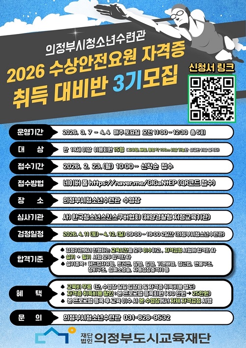 ÀÇÁ¤ºÎµµ½Ã±³À°Àç´Ü(´ëÇ¥ÀÌ»ç À̼º)Àº ÀÛ³â ÇÑÇØ ¿î¿µÇÑ ¼ö»ó¾ÈÀü¿ä¿ø ÀÚ°ÝÁõ Ãëµæ¹Ý¿¡ ´ëÇÑ ½Ã¹ÎµéÀÇ ³ôÀº °ü½É°ú Âü¿©ÀÚ Àü¿ø ÀÚ°ÝÁõ ÃëµæÀ̶ó´Â ¼º°ú¿¡ ÈûÀÔ¾î, ¿À´Â 3¿ù 7ÀϺÎÅÍ 4¿ù 12ÀϱîÁö‘¼ö»ó¾ÈÀü¿ä¿ø ÀÚ°ÝÁõ Ãëµæ¹Ý 3±â’¸¦ °³¼³·¿î¿µÇÑ´Ù°í ¹àÇû´Ù.