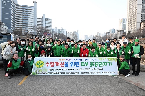 ÀÇÁ¤ºÎ½Ã´Â 2¿ù 21ÀÏ ÀÇÁ¤ºÎ½Ã »õ¸¶À»È¸(ȸÀå Á¶»ó±Ç)°¡ °æÀüö µ¿¿À¿ª Àαٿ¡¼ ¼öÁú °³¼±À» À§ÇÑ EM Èë°ø ´øÁö±â Ȱµ¿À» ½Ç½ÃÇϰí, À̾î È£¿øµ¿ ¹æ¸é ¾à 3§° ±¸°£¿¡¼ Áß¶ûõ °È±â Çà»ç¸¦ ÁøÇàÇß´Ù°í ¹àÇû´Ù.