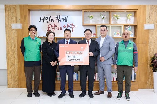 ¾çÁֽô 25ÀÏ Á÷Àå·°øÀå»õ¸¶À»¿îµ¿ ¾çÁÖ½ÃÇùÀÇȸ(ȸÀå ¿À¼ö¿µ) ȸ¿øÀÌÀÚ ¢ßǪ¸§³Ý ±è¼öÅ ´ëÇ¥À̻簡 °íÇâ»ç¶û±âºÎÁ¦¿¡ µ¿ÂüÇØ 150¸¸ ¿øÀ» ±âºÎÇß´Ù°í ¹àÇû´Ù.