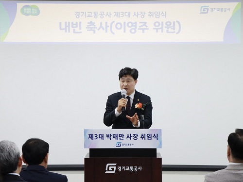 °æ±âµµÀÇȸ °Ç¼³±³ÅëÀ§¿øÈ¸ ÀÌ¿µÁÖ ÀÇ¿ø(±¹¹ÎÀÇÈû, ¾çÁÖ1)Àº Áö³ 3¿ù 27ÀÏ(±Ý) °æ±â±³Åë°ø»ç 3Ãþ ±³À°Àå¿¡¼ ¿¸° ‘°æ±âµµ ±¤¿ªÀ̵¿Áö¿ø¼¾ÅÍ Äݼ¾ÅÍ KS ¼ºñ½º ÀÎÁõ ÇöÆÇ½Ä’ ¹× ‘Á¦3´ë »çÀå ÃëÀӽĒ¿¡ Âü¼®ÇØ ¹ÚÀ縸 »çÀåÀÇ ÃëÀÓÀ» ÃàÇÏÇϰí, °æ±â±³Åë°ø»çÀÇ ¿ªÇÒ°ú ÇâÈÄ ¹ßÀü ¹æÇâ¿¡ ´ëÇØ ÀÇ¹Ì ÀÖ´Â ¸Þ½ÃÁö¸¦ ÀüÇß´Ù.