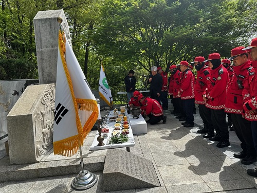 µ¿µÎõ½Ã´Â 4¿ù 23ÀÏ ½Ãû ¾Õ »êºÒÁøÈ ¼øÁ÷ÀÚ ÃßµµÅ¾¿¡¼ »êºÒ ÁøÈ ÀÛ¾÷ Áß ¼ûÁø ¼øÁ÷ÀÚµéÀ» ±â¸®´Â Ãßµµ½ÄÀ» °³ÃÖÇß´Ù.