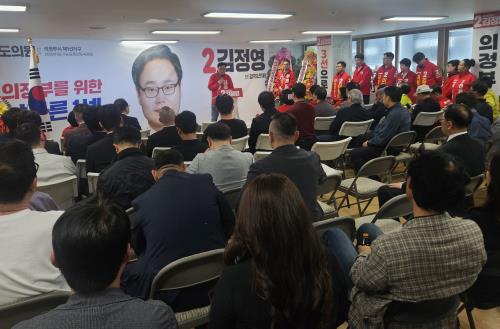 3¼±¿¡ µµÀüÇÏ´Â ±èÁ¤¿µ ±¹¹ÎÀÇÈû °æ±âµµÀÇ¿ø(ÀÇÁ¤ºÎ½Ã Á¦1¼±°Å±¸) È帰¡ ¼±°Å»ç¹«¼Ò¸¦ °³¼ÒÇÏ°í ½Â¸®¸¦ ´ÙÁüÇß´Ù.