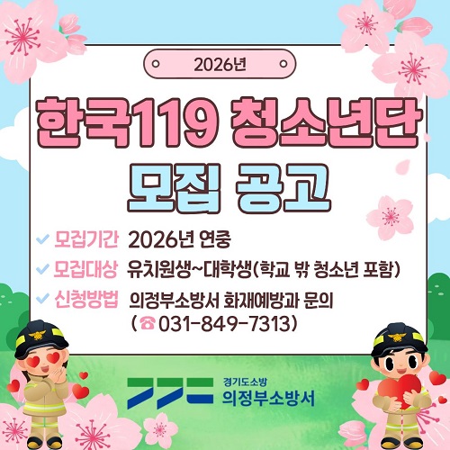 ÀÇÁ¤ºÎ¼Ò¹æ¼´Â 2026³â Áö¿ª ³» ¾î¸°ÀÌ¿Í Ã»¼Ò³âÀÇ ¿Ã¹Ù¸¥ ¾ÈÀüÀÇ½Ä ÇÔ¾ç°ú ¹Ì·¡ ¾ÈÀü ¸®´õ À°¼ºÀ» À§ÇÑ ‘2026³â Çѱ¹119û¼Ò³â´Ü’ ½Å±Ô ´Ü¿øÀ» ¸ðÁýÇÑ´Ù°í ¹àÇû´Ù.