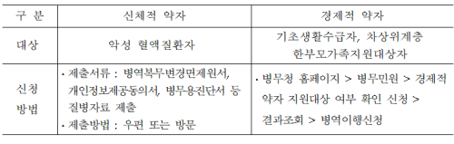 °æÁ¦Àû·½ÅüÀû Ãë¾àÀÚÀÇ º´¿ªÀÌÇà Áö¿ø¼ºñ½º´Â °³ÀÎÁ¤º¸Á¦°ø¿¡ µ¿ÀÇÇÑ °æ¿ì ´ÙÀ½°ú °°ÀÌ ½ÅûÇÏ¸é µÈ´Ù.