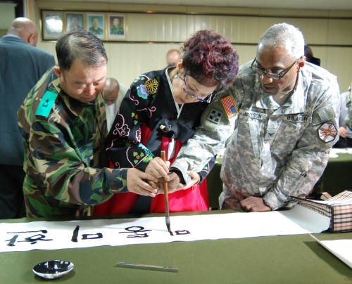 À̾î, ÁøÇàµÈ Çѱ¹¹®È üÇè½Ã°£¿¡´Â Âü¼®ÇÑ ¹Ì±ºµéÀÌ Á÷Á¢ ¸ÔÀ» °¥°í, º×±Û¾¾¸¦ ¹è¿öº¸´Â ¼¿¹Ã¼Çè°ú Á¦±âÂ÷±â, ÅõÈ£ ´øÁö±â µî ¿ì¸® °íÀ¯ÀÇ ¹®È¸¦ Á¢ÇØ º¸´Â ±âȸ°¡ µÇ¾úÀ¸¸ç, ƯÈ÷, ¼¿¹ üÇè½Ã°£¿¡´Â ÇöÀç Çѱ¹¼ÈÀÛ°¡Çùȸ ºÎȸÀåÀ¸·Î Ȱ¹ßÇÑ ÀÛǰȰµ¿À» Çϰí ÀÖ´Â ¼®Á¤(à´ïÍ) ¹Ú¼øµµ ¼±»ýÀÌ Á÷Á¢ Âü¼®ÇÏ¿© ¹Ì±ºµé¿¡°Ô ÀÏÀÏÀÌ ¼¿¹ ¾²´Â ¹ýÀ» °¡¸£ÃÄ ÁÖ´Â µî ¿ì¸® ¹®Èµµ ¾Ë¸®´Â ÀǹÌÀÖ´Â ½Ã°£À» °®±âµµ ÇÏ¿´´Ù.